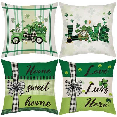 Happy St Patrick's Day Pillow Covers, 4 Pcs Lucky Shamrock Truck Decoration