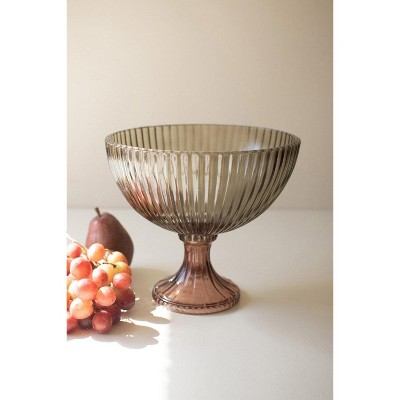 Ribbed Glass Compote – Multi-Color Decorative Bowl 9.5" for Display or Serving By Kalalou