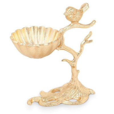 Classic Touch 3.5"D Gold Centerpiece Bowl on Branch Base with Bird