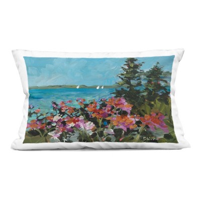 Stupell Industries Coastal Flowers with Seascape Indoor Decorative Throw Pillow, 14 x 20
