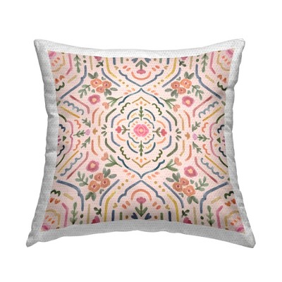 Stupell Industries Delicate Pink Floral Line Pattern Shapes Outdoor Decorative Throw Pillow, 18 x 18