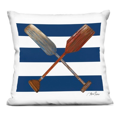 Stupell Industries Nautical Crossed Oars Wide Blue Stripes Indoor Decorative Throw Pillow, 18 x 18