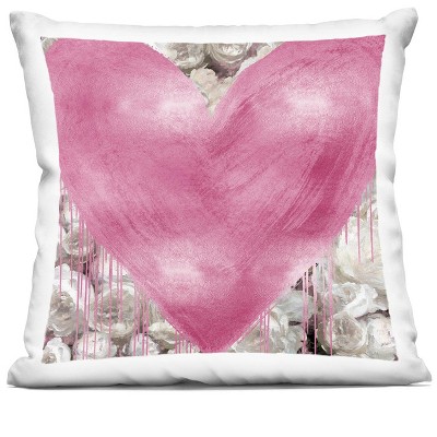 Stupell Industries Street Style Pink Heart Rose Blossom Flowers Indoor Decorative Throw Pillow, 18 x 18