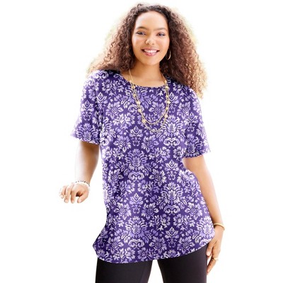 Roaman's Plus Size Angelina Tunic Top – Short Sleeve, Flowy Fit, Everyday Comfort