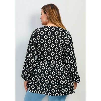 Woman Within Perfect Printed Three-Quarter Sleeve Crewneck Tunic