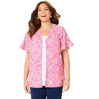 Jessica London Wrinkle-Free Stretch Poplin Shirt