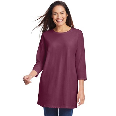 Lands' End Women's 3/4 Sleeve Cotton Slub Lace Trim Top