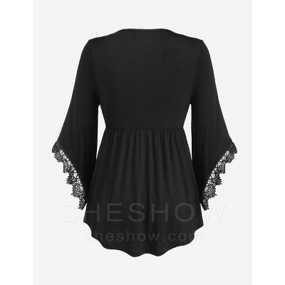 Anna-Kaci Womens Short Sleeve V Neck Eyelet Trim Babydoll Woven Blouse Top
