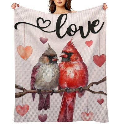 Valentine's Day Fleece Blanket Ultra Soft Anti-Pilling Cardinal Bird Couple Print for Couch Bed Camping 30x40 inches