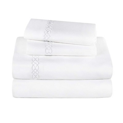 Plazatex Embossed 1800 Series Wrinkle Resistant Stripe All Season Bed Sheet Set, White