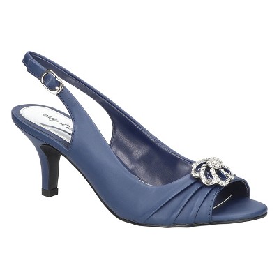Perphy Women's Clear Slingback Rhinestone Peep Toe Block Sandal Heels
