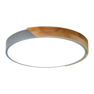 Dewdrop Modern LED Flush Mount Ceiling Light 1-Light with Wood Accent, Round Fixture