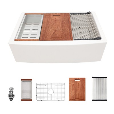 White Farmhouse Sink Workstation - 33 inch White Ceramic Single Bowl Farm Kitchen Sink