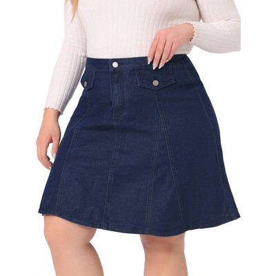 Women's Plus Size Denim Button Down Side Pocket Casual Jean A-Line Mini Skirt - Agnes Orinda