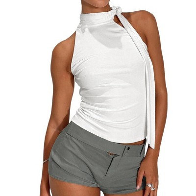 Off Shoulder Halter Mock Neck Crop Top – Women's Sleeveless Tie-Up Summer Tank