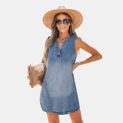Anna-Kaci Women's Distressed Denim Overall Tunic Dress for Everyday Casaul Wear