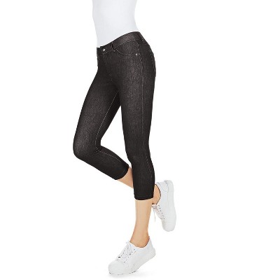 Memoi Denim Zipper Capri Cotton Blend Jean Leggings
