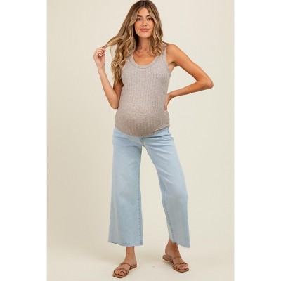 Pinkblush Light Blue Raw Hem Cropped Wide Leg Maternity Jeans