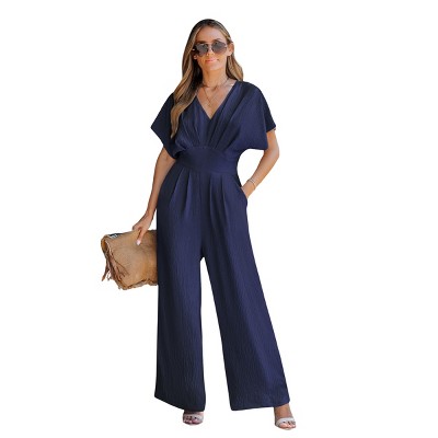 Women's Breezy Crinkled Chiffon Surplice Neckline Wide Leg Jumpsuit - Cupshe