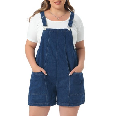 Women's Plus Size Adjustable Strap Pocket Roll Hem Denim Overall Jean Shorts - Agnes Orinda
