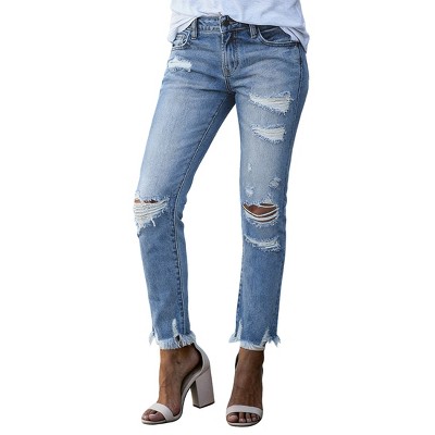 Women's Ripped High Waisted Boyfriend Jeans Distressed Stretchy Denim Pants