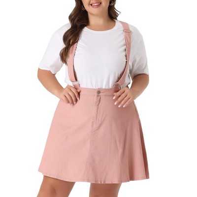 Agnes Orinda Women's Plus Size Denim Adjustable Strap Suspender Cross Back Summer A Line Mini Jean Skirts