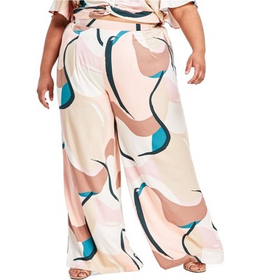 Nina Parker Womens Exploded Geo Swirl Wide Leg Relaxed Casual Pants