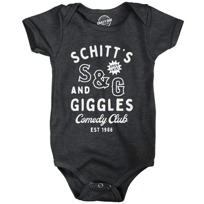 Schitts and Giggles Comedy Club Baby Bodysuit Funny Nightclub Joke Jumper for Infants - Crazy Dog Baby Bodysuit With Sarcastic Sayings