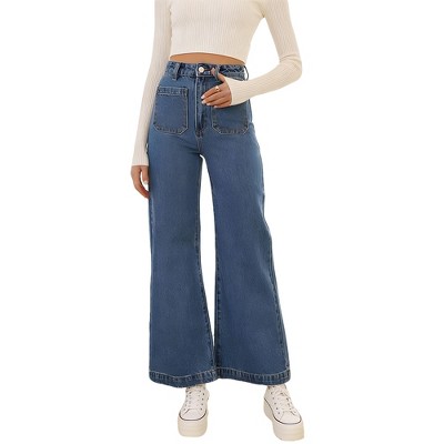 Women's High Waisted Wide Leg Jeans Patch Pocket Denim Pants Wide Leg Casual Trousers