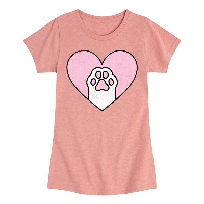Girls' - Instant Message - Cat Paw Heart Fitted Short Sleeve Graphic T-Shirt