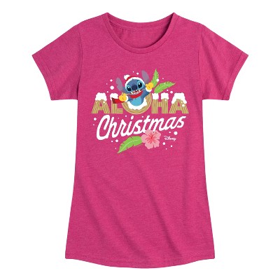 Girls' - Lilo & Stitch - Aloha Christmas Fitted Short Sleeve Graphic T-Shirt
