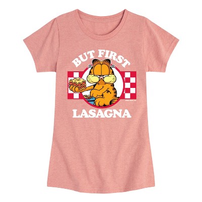 Girls' - Garfield - But First, Lasagna Fitted Short Sleeve Graphic T-Shirt