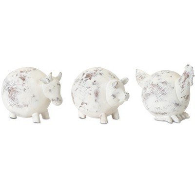 Weathered Stone Farm Animal Figurines – Set of 3 Rustic Resin & Stone Powder Cow, Pig & Chicken Home Decor Accents By Melrose