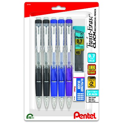 Pentel Twist Erase Click 0.7mm 5pk with lead and eraser