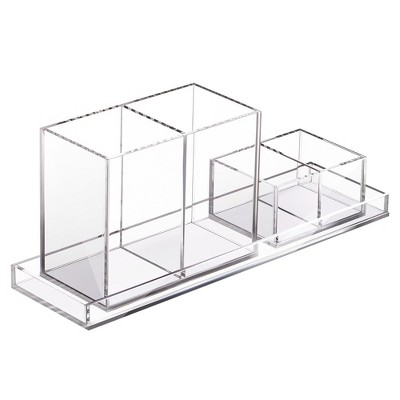 Wrapables Pen Organizer with 4 Compartments Desk Storage Organizer for Home, Office, Work, Large (2pcs) / Clear