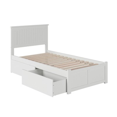 HomeStock Nantucket Twin Platform Bed with Footboard & Storage Drawers, White