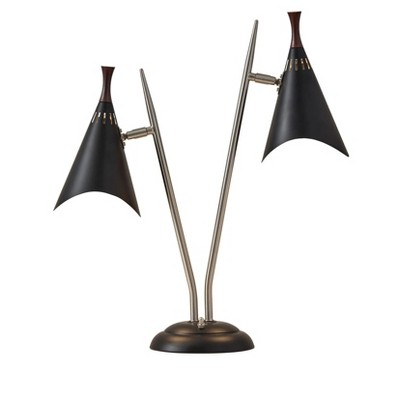 HomeRoots 22" Black and Silver Metal Two Light Desk Lamp With Black Cone Shades
