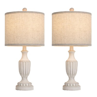 Itopfox Farmhouse Table Lamps Set of 2, White Rustic Vintage for Living Room Bedroom, Antique Bedside Desk Lamps with Linen Shade, Traditional Resin