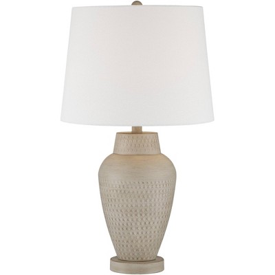 360 Lighting Rupert Rustic Farmhouse Table Lamp 24 3/4" High Beige Hammered Off White Linen Drum Shade for Bedroom Living Room Bedside Nightstand Home