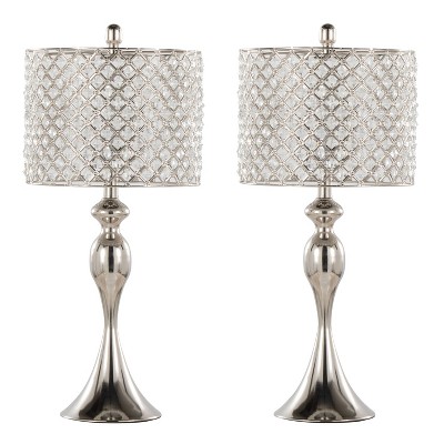 LumiSource (Set of 2) Ashland 27" Contemporary Table Lamps Polished Nickel with Square Clear K9 Crystal from Grandview Gallery: Empire Shade