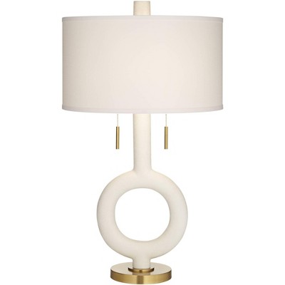 Possini Euro Design Swift Modern Table Lamp with Round Riser 32" Tall Mercury Glass USB Charging Port Dimmer Double Drum Shade for Bedroom House Desk