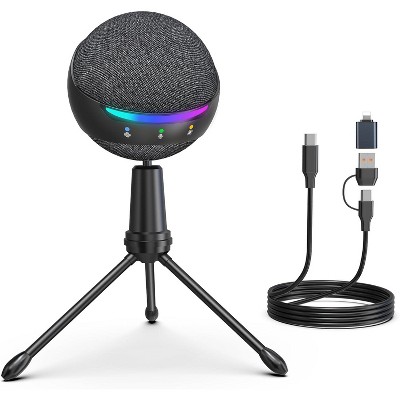 Emerson EAM-9052 USB Gaming & Streaming Condenser Microphone with LED Lighting and Pop Filter, Black
