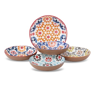 Lorren Home Trends Decorative Bone Porcelain Bowl Set, 5-Piece, Floral Pattern, 1 Large 10" Bowl with 4 Small 8.25" Bowls