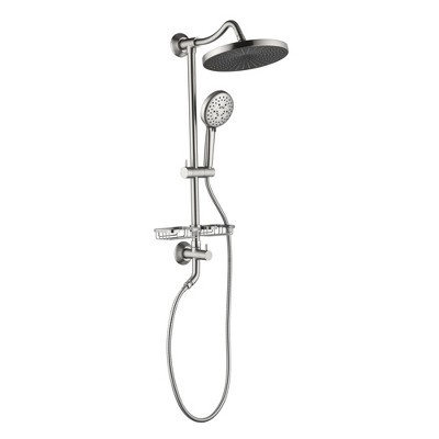 Shower Faucet With Storage Rack 8-inch Rain Shower Head Shower decoration kit with single spray shower head Shower Faucet Set Complete Brushed Nickel
