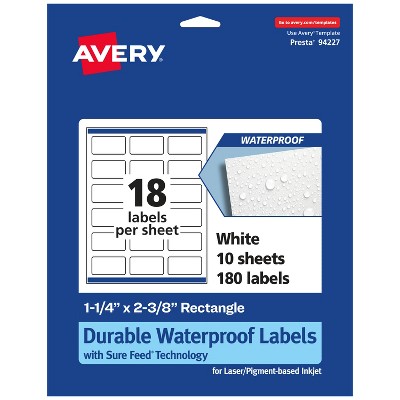 Avery Durable Waterproof Rectangle Labels with Sure Feed, 1-1/4" x 2-3/8"
