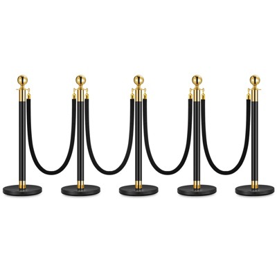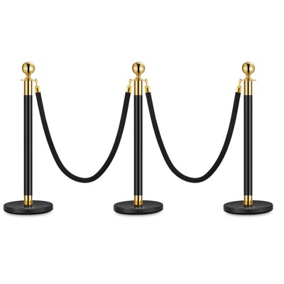 2/3/4/5PCS Stanchion Posts Queue with Black Rope, 5 ft Black Carpet Ropes and Poles, Crowd Control Barriers Queue Line Rope, Barriers for Party