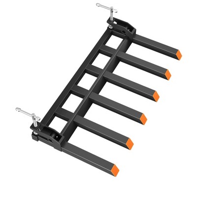 Adjustable Clamp On Debris Pallet Forks for 58" Loader Bucket – 4000LBS Capacity, 6 Tine, Stabilizer Bar – Steer Farm Equipment Attachment