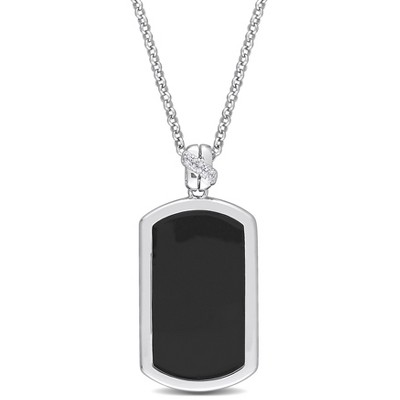 Chisel Stainless Steel with 14K Gold Accent and 1pt Diamond DAD Black Enameled Pendant on a 24" Curb Chain Necklace
