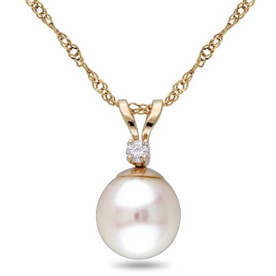 EVERLY JEWELRY | 14k Yellow Gold 7-7.5mm Cultured Freshwater Pearl and Diamond Accent Pendant with Chain, 17"
