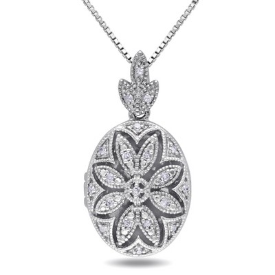 EVERLY JEWELRY | Sterling Silver 1/10 CT TW Diamond Floral Locket Pendant with Chain in Sterling Silver